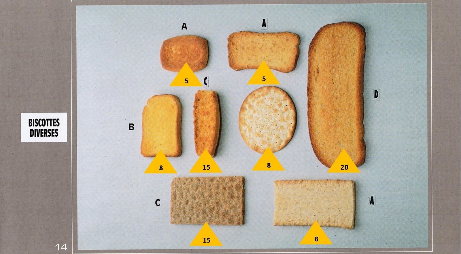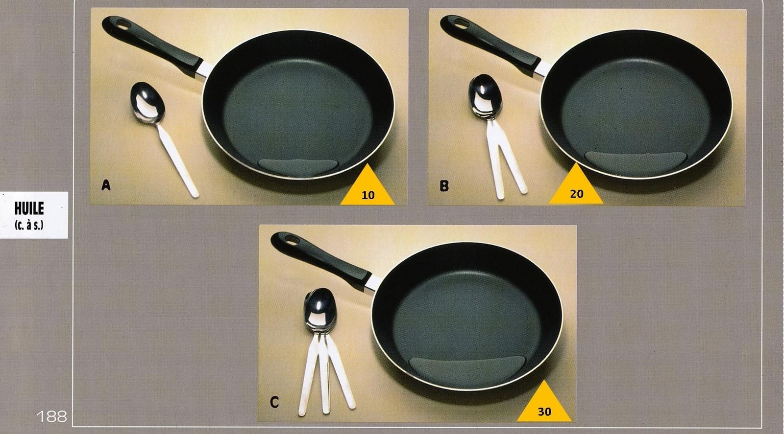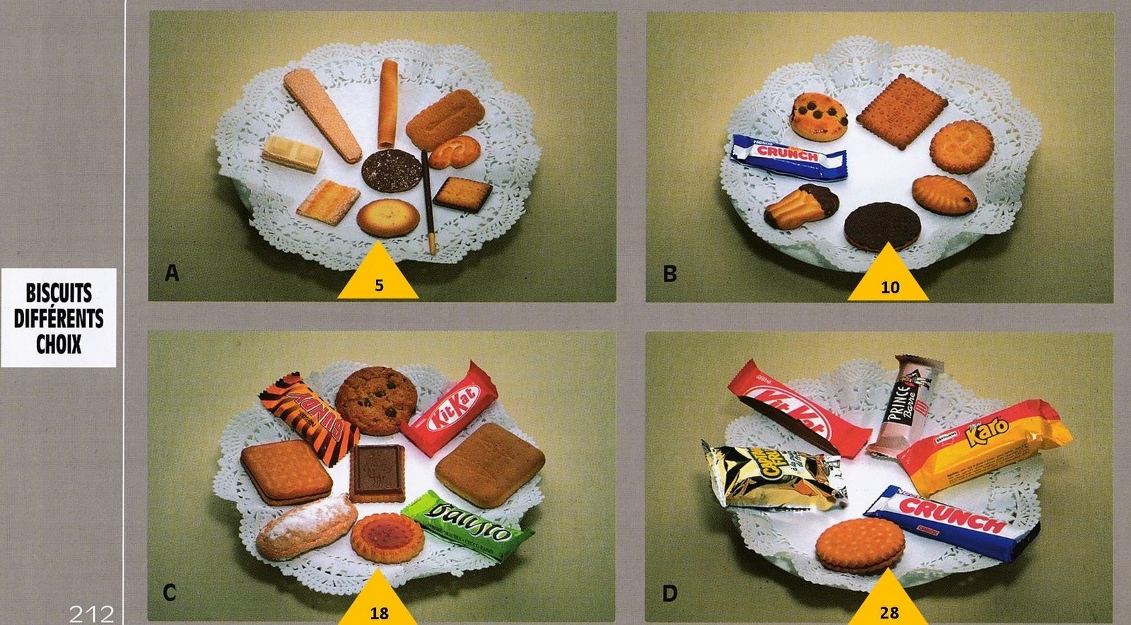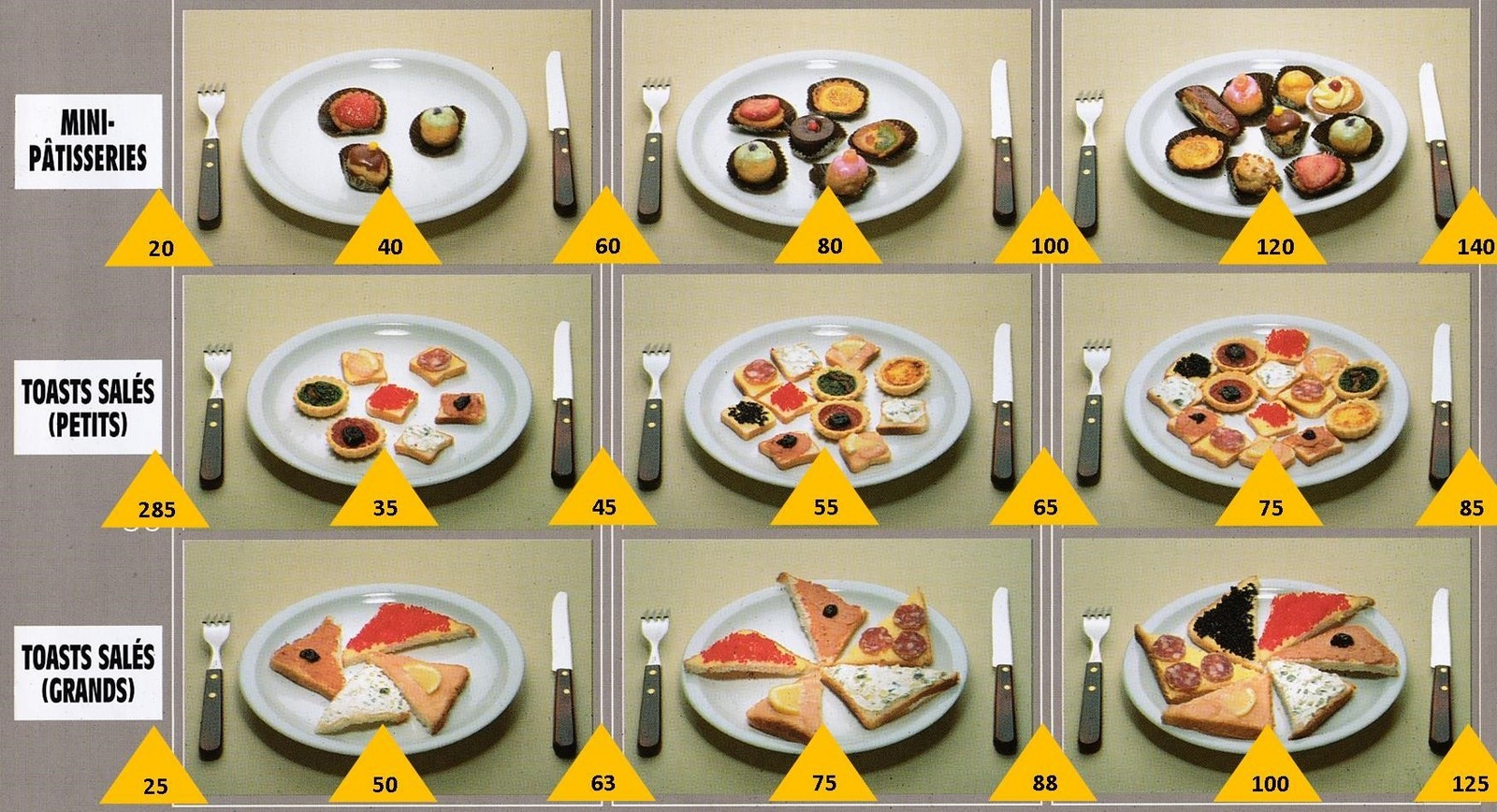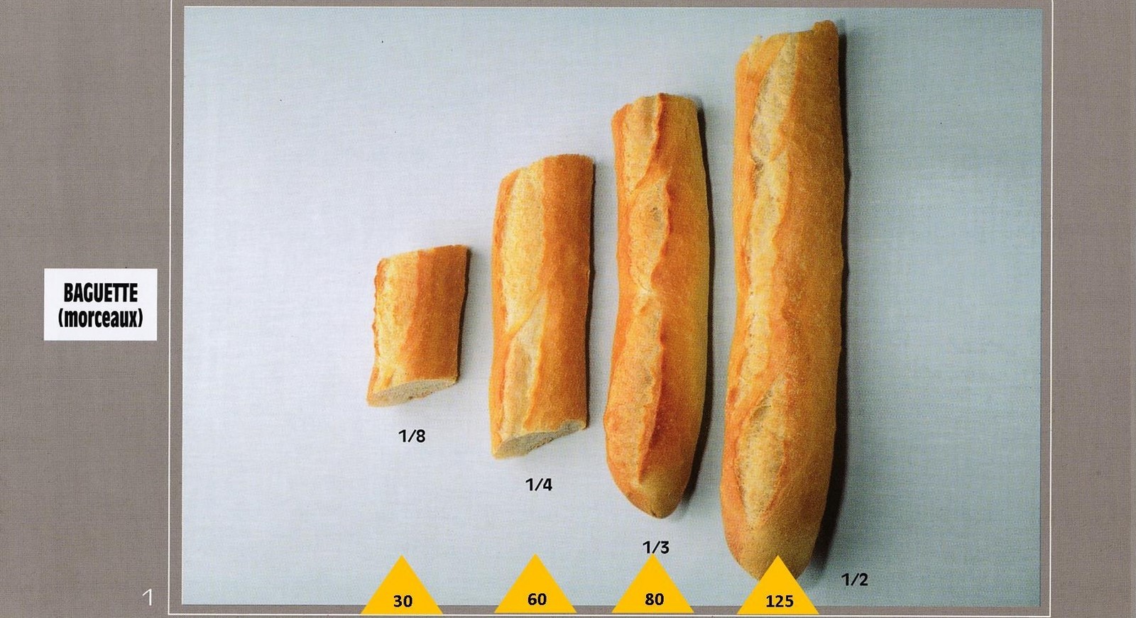 Le poids des aliments est noté dans les triangles jaunes, en grammes pour les aliments solides, en millilitres pour les aliments liquides.